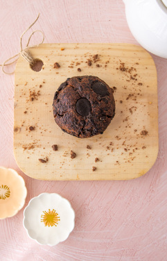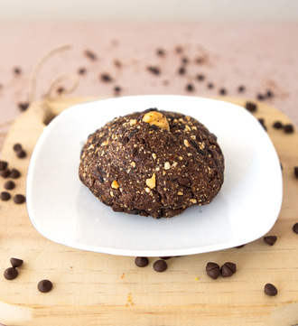 Galleta de chocolate con trozos de avellana y nueces, y un cremoso corazón de ganache de avellana. Pura entrega en cada bocado